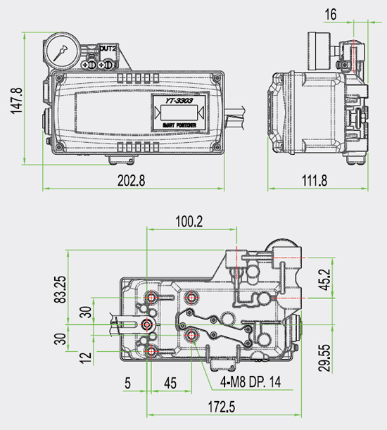 * 產品外部裝有液晶屏(LCD),因此可以在現場直接確認定位器的狀態。